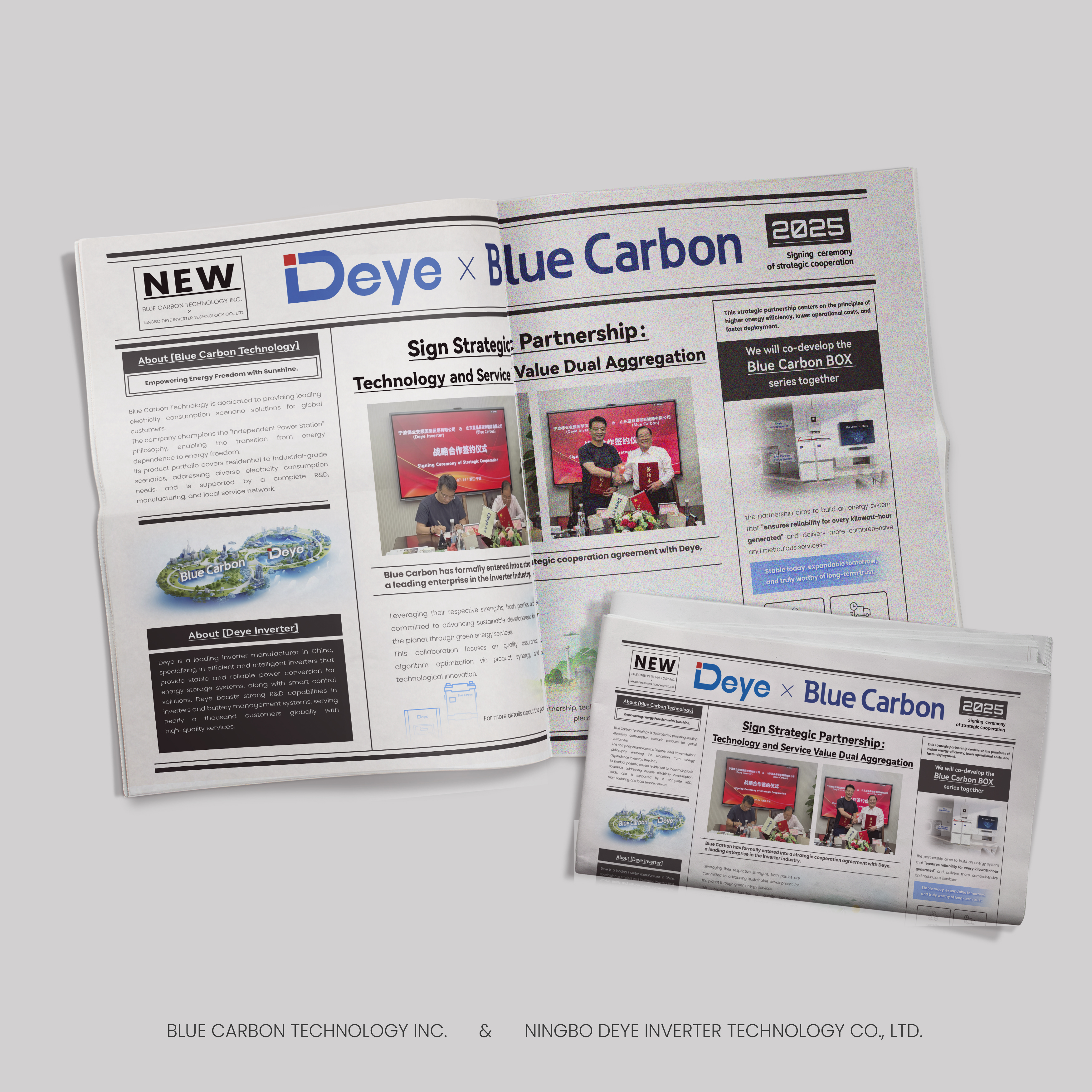Diese Partnerschaft spiegelt die gemeinsame Vision beider Unternehmen wider: den globalen Übergang zur Energieunabhängigkeit und nachhaltige Entwicklung. Durch die Fusion der branchenführenden F & E-F & E von Deye mit dem szenario-basierten Fachwissen von Blue Carbon sind die beiden Parteien verpflichtet, zukünftige, benutzerorientierte Energiesysteme zu erstellen, die heute stabil sind, morgen erweiterbar sind und einem langfristigen Vertrauen wirklich würdig sind.
